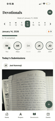 Get gentle reminders when someone posts a devotional, prayer, or update—so no one falls behind or forgets to show up.