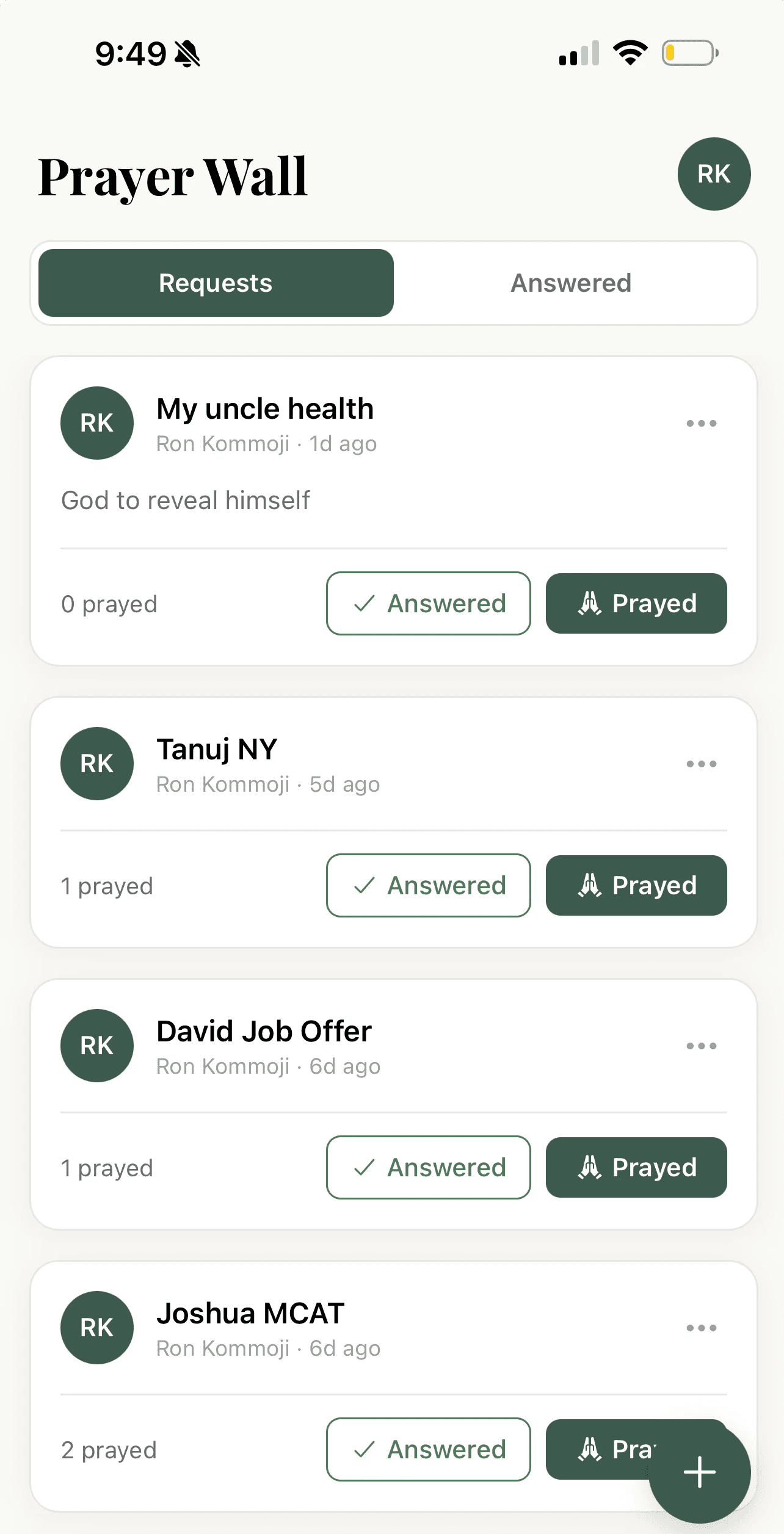 Add prayer requests, celebrate answered prayers, and support each other daily.